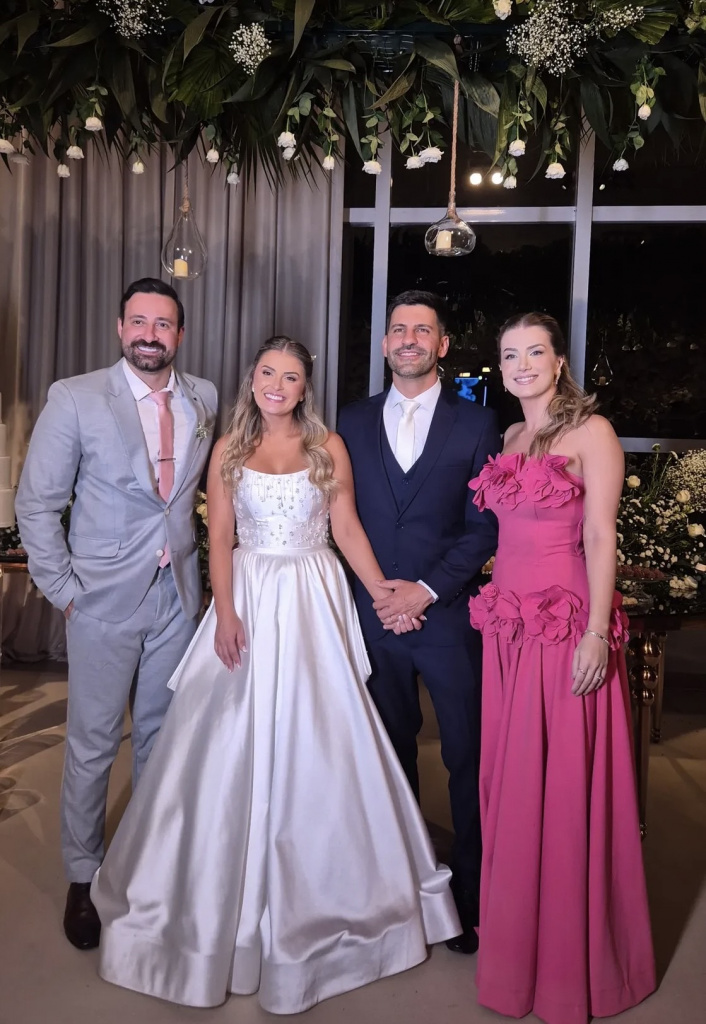 O engenheiro Lucas Rotta e a advogada Páthilla Pizzetti celebraram seu casamento em uma cerimônia emocionante no Rhóis Centro de Eventos. A organização impecável ficou por conta da assessora Rafa Cabral, com decoração do Lírio do Vale e o paisagismo cuidadosamente elaborado por Art Rosa. Os registros emocionantes do grande dia foram feitos pelos talentosos fotógrafos Fabiano Patrício e Lu Alves. Em um dos cliques especiais da noite, os noivos posam ao lado dos extraordinários padrinhos, os médicos Fábio Borges e Gabriela Aguiar, que também vivem a expectativa do grande dia: eles sobem ao altar no próximo dia 10 de maio