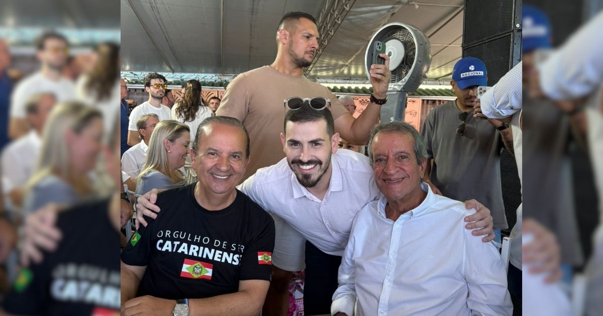 Afinal, o ex-vereador que foi rejeitado pelo PL de Urussanga, chegando a ter a sua filiação cancelada, aparece na festa confraternizando com o governador Jorginho Mello, com o candidato ao senado Carlos Bolsonaro e com o presidente nacional do PL, Valdemar Costa Neto.