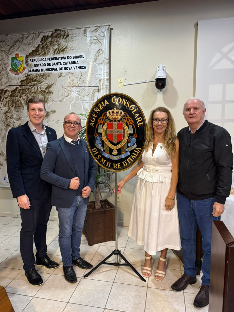 No final da cerimônia foi exibido o escudo com o Emblema da Agencia Consular de Nova Veneza, enviada da Itália no reinado de Vitorio Emanuelle III.