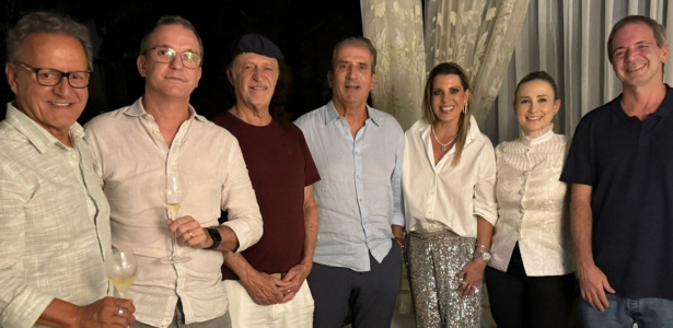 Everaldo João, Luiz Gonzaga Bertoncini, Desembargador Osmar Nunes Filho e a esposa Dani, Ana Bertoncini e o produtor Júlio.