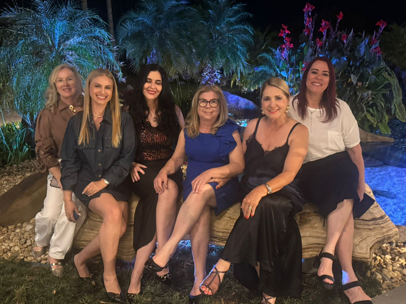 Dalva Lemmer, Morgana Daniel, Márcia Severo, Lacy Margarete, Cida Timboni e Silvana Esmeraldino em noite de confraternização na Alameda Pavó.