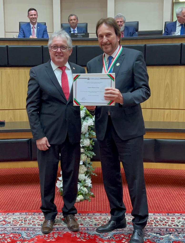 Deputado Tiago Zilli e o prefeito César Cesa. Merecida homenagem