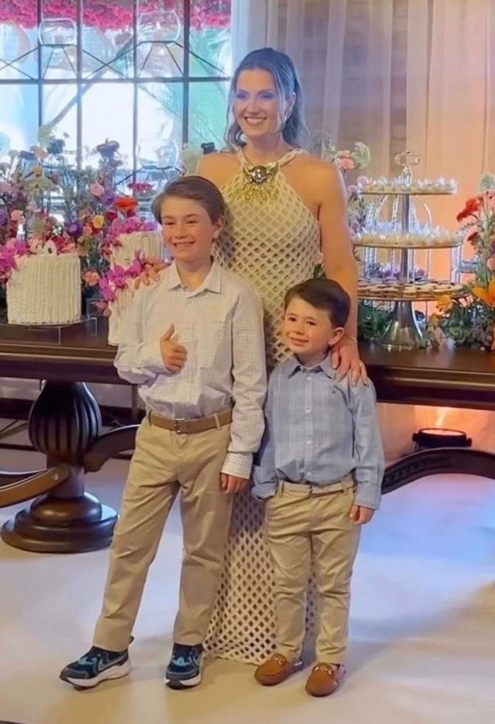 Dra Tulia Kleverson com seus dois tesouros, na festa que comemorou seus 4.0 no Yate Clube Morro dos Conventos
