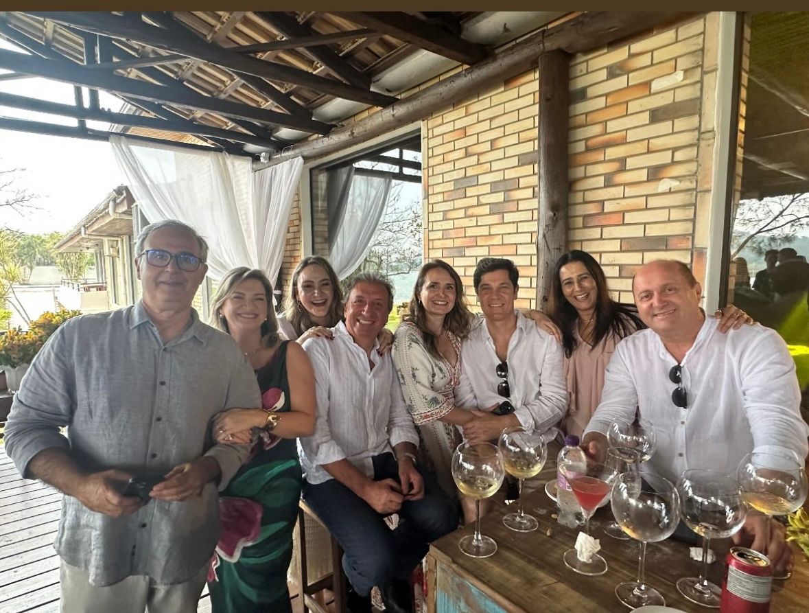 Conceituado advogado César Abreu e a esposa Maria do Rocio Luz Santa Rita presidente do TRE de SC, com Luiz Gonzaga Bertoncini que tem o melhor network e a esposa Ana numa tarde delícia na Quinta da Barra.
