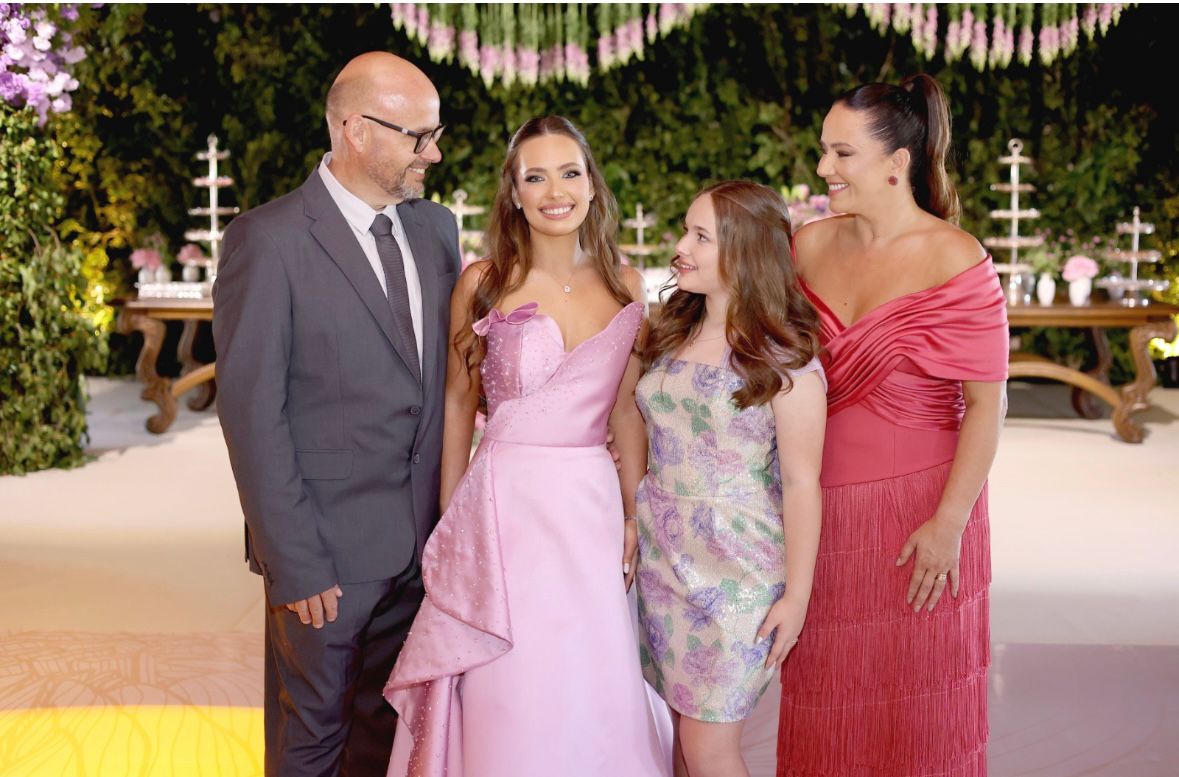 Amanda com os pais Beto e Ângela e a mana Beatriz que é uma artista.