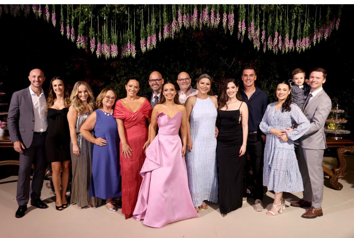 Linda Vanessa Milioli com as filhas Serena e Sofia e os genros.