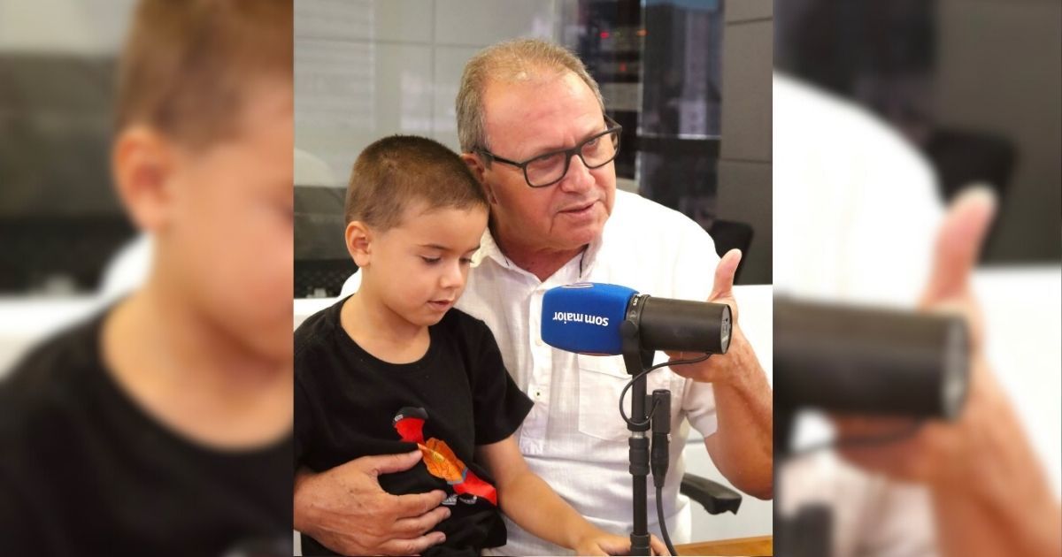 Adelor Lessa ensinando o B A BA da comunicação para o neto Mateo
