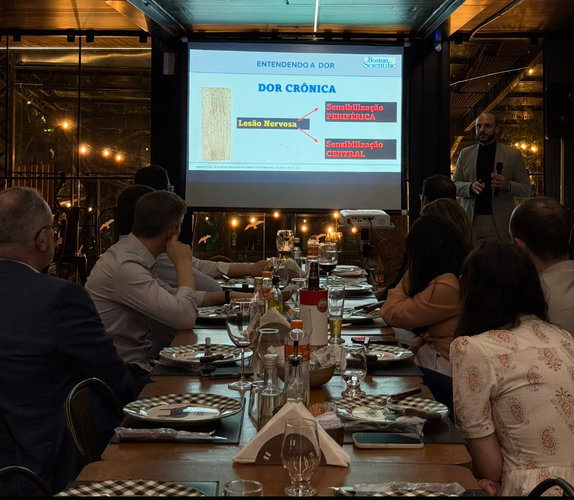 Uma noite especial no El Tarquin marcou o jantar científico promovido pela Aura Neurologia. Os neurocirurgiões Dr. Rodrigo Marcelos e Dr. Luiz Lavradas Jr. receberam convidados para a apresentação de uma tecnologia inovadora no tratamento de anginas refratárias e úlceras vasculares que não cicatrizam: o estimulador medular, que vem mostrando resultados impressionantes. O encontro também contou com a presença do neurologista e chefe da Aura, Dr. Fernando Topanoti, reforçando a importância do momento para o avanço da medicina e para a melhoria da qualidade de vida dos pacientes