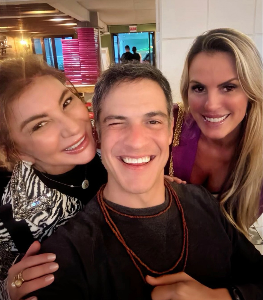 Tânie Carlessi e Bia Gomes aproveitaram a passagem do ator Mateus Solano por Criciúma para tietá-lo após a apresentação do monólogo "Figurante", no Teatro Elias Angeloni. O encontro na Forneria Casaluce rendeu registros e muita admiração pelo talento do artista