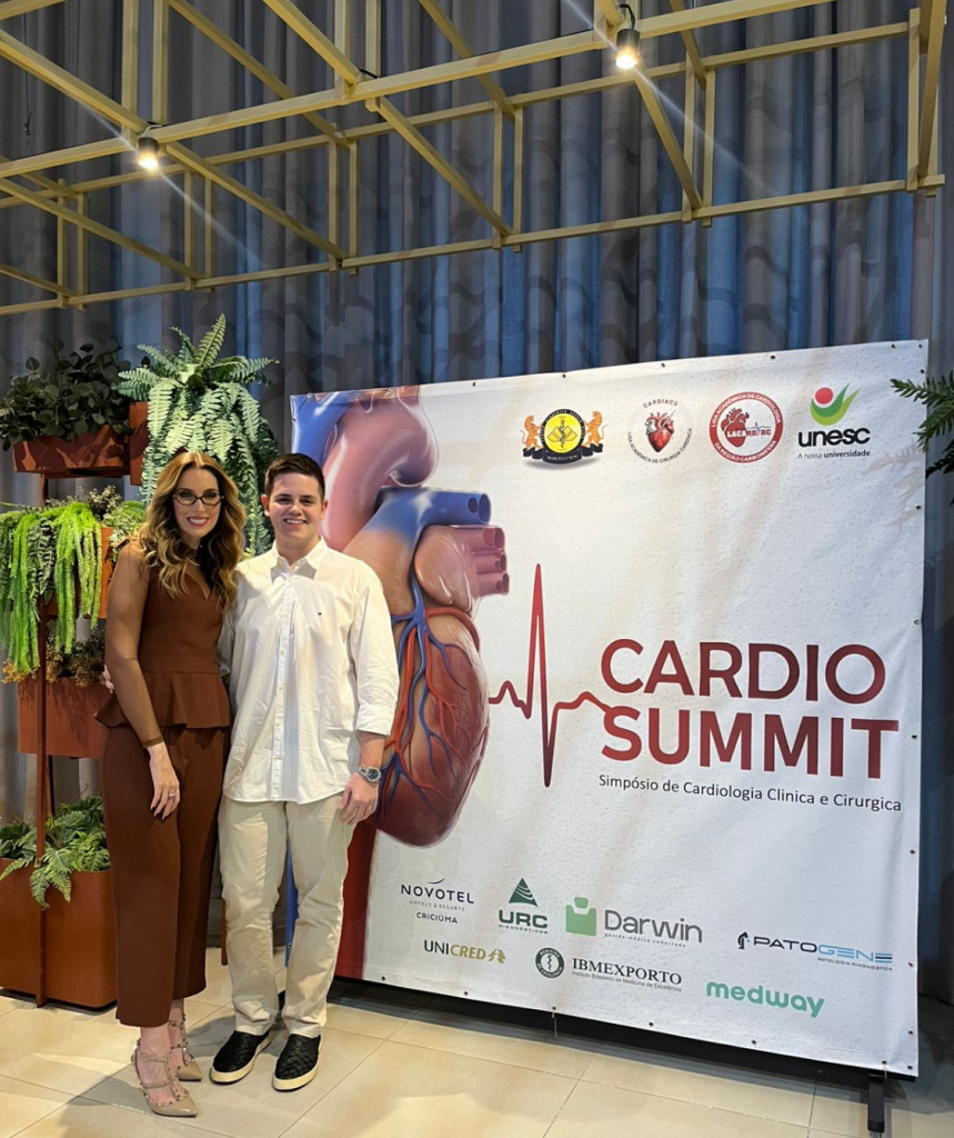 O Cardio Summit, simpósio de cardiologia clínica e cirúrgica, foi realizado no CRIO, reunindo profissionais e especialistas da área em uma programação de alto nível. Entre os participantes estiveram Amanda Bolan, uma das palestrantes da noite, na foto junto de Enzo Magrin, estudante de Medicina da Unesc, que pôde acompanhar de perto as discussões e atualizações apresentadas pelos renomados cardiologistas. O evento se destacou como um espaço importante de troca de conhecimento, aprendizado e integração entre profissionais e futuros médicos.