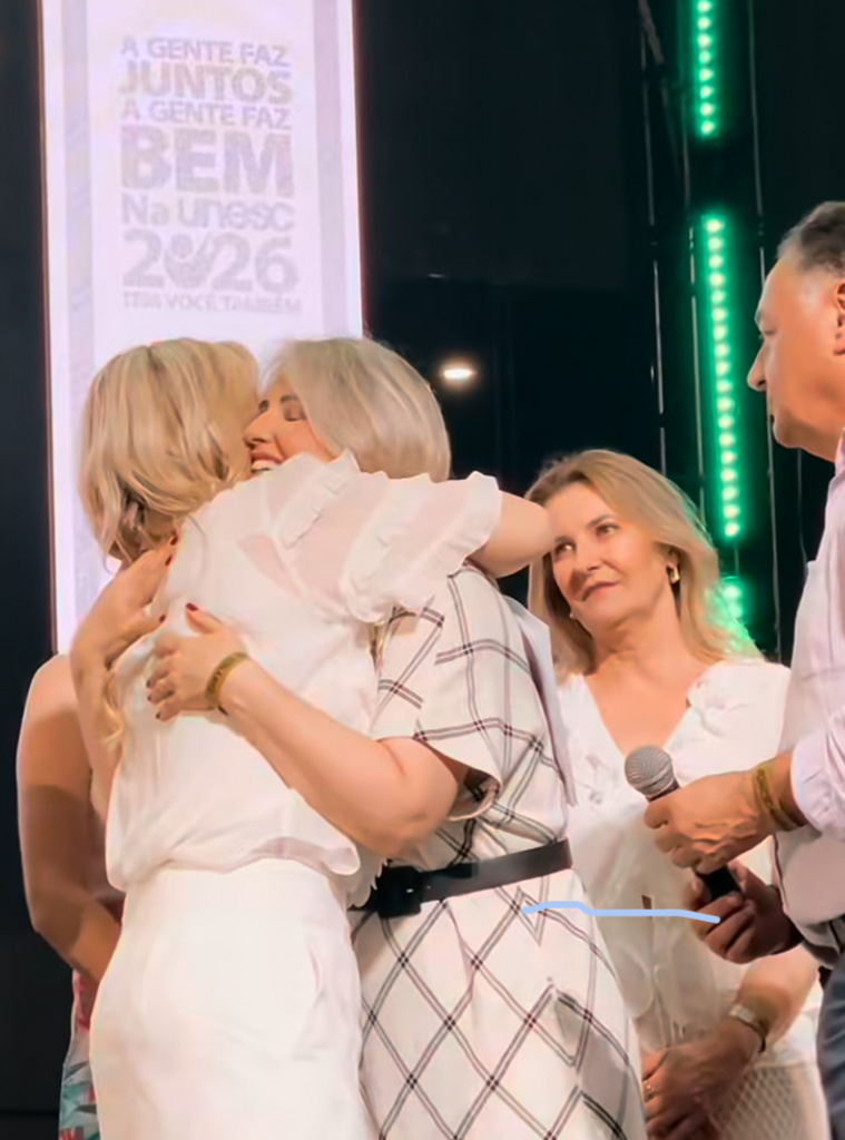A secretária de Estado da Educação, Luciane Bisognin Ceretta, e a reitora em exercício da Unesc, Gisele Coelho Lopes, em um abraço comemorativo durante a confraternização que reuniu colaboradores da universidade comunitária para celebrar o ano. Assim como em 2019, 2023 e 2024, a Unesc voltou a ser reconhecida como Lugar Incrível para Trabalhar, segundo o ranking FIA/Estadão. A noite reuniu gratidão, pertencimento e a certeza de que os próximos capítulos serão ainda mais promissores