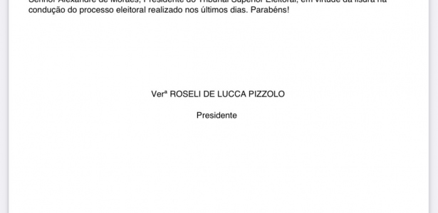 A Câmara de Vereadores de Criciúma parabenizou o ministro Alexandre de Moraes pela condução do processo eleitoral no Brasil. O pedido foi da vereadora Giovana Mondardo (PCdoB). O documento é do dia 3 de novembro.