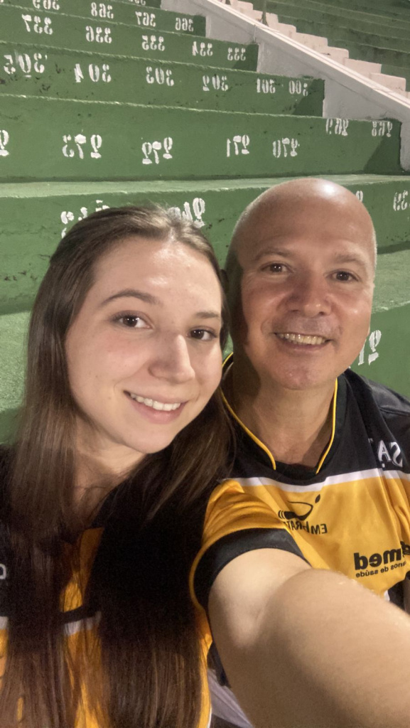 Ronaldinho Manfredini com a filha assistiu ontem em Campinas a derrota do Tigre