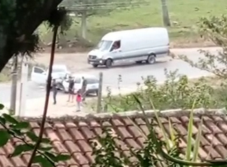 Uma colisão entre dois veículos, um Renault Clio e uma Volkswagen Saveiro, foi registrada na manhã desta quinta-feira (7), na Rua Gregório Espíndola, no bairro Santa Apolônia, em Sangão.