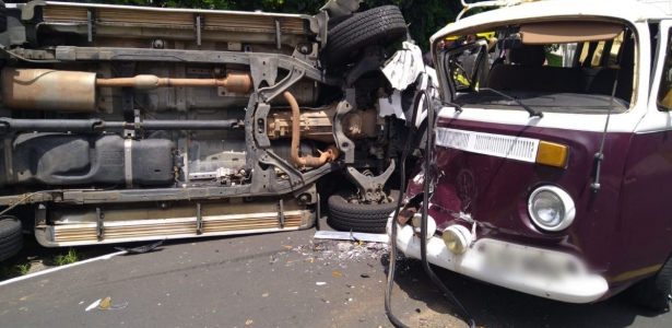 De acordo com o Corpo de Bombeiros, os veículos colidiram por volta das 11 horas, na rua Arcângelo Meller. Com o impacto, a caminhonete ficou lateralizada sobre a via, enquanto a Kombi teve parte da dianteira destruída.
