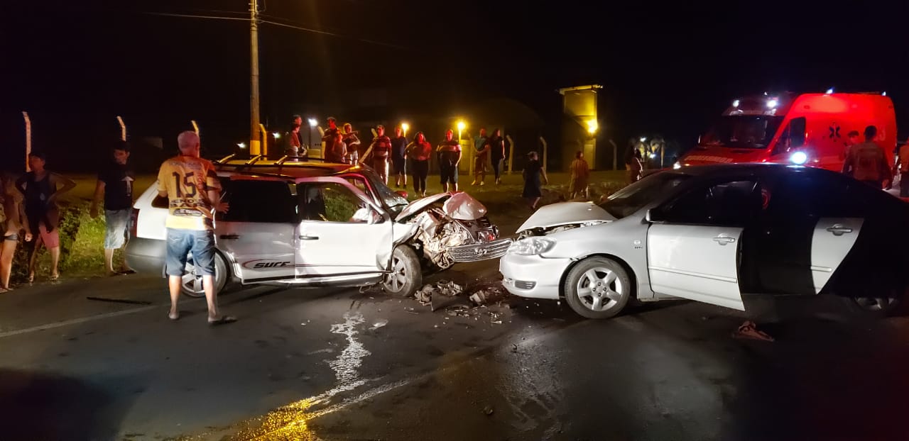Cinco pessoas ficaram feridas em um grave acidente na noite deste sábado, 15, na rodovia Governador Jorge Lacerda no bairro Sangão, em Criciúma. A colisão frontal ocorreu no KM 379,6, e envolveu um Toyotta Corolla, com placas de Forquilhinha, e um VW Parati de Criciúma, que fugiu do local sem prestar socorro.