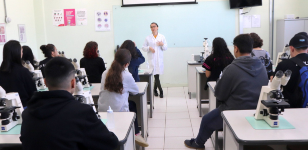 E não foi só Vitória que se encantou com os espaços visitados. Os olhos de cada um dos estudantes brilhavam ao ver a biblioteca, os laboratórios, os equipamentos e tantos outros locais da Unesc. Mais que uma visita, eles ainda tiveram os conhecimentos postos à prova em um dos laboratórios da área da saúde visitados. De lá do Bloco S, foram direto para as Clínicas Integradas, onde o encanto permaneceu. "Eles se encontram em um momento de escolher o que seguir depois da escola, então é uma forma de mostrarmos um caminho que seja interessante e a Unesc proporciona um olhar diferente para diversas áreas, o que possibilita que possam escolher o caminho que querem seguir futuramente. É uma forma de oportunizar a eles a conhecer a Universidade antes de se formarem", comenta a professora de Língua Portuguesa e Língua Inglesa, Josiane Paulino Mezari Fontana", acrescentando que sempre leva os alunos do terceirão à Unesc, atividade que não ocorreu somente durante a pandemia.