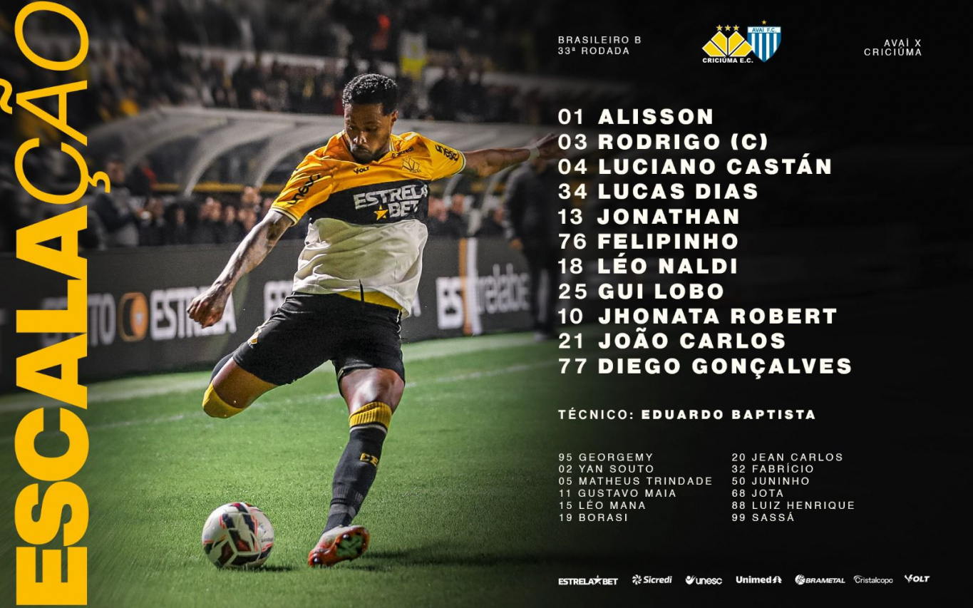 Neste domingo (19), às 16h, Avaí e Criciúma se enfrentam no Estádio da Ressacada, Florianópolis /SC, em jogo válido pela 33ª rodada da Série B do Campeonato Brasileiro. Na classifcação, time carvoeiro ocupa quarta colocação na tabela, somando 53 pontos. Já o Leão está na 11ª posição, com 44 pontos ganhos. Este será o terceiro confronto entre as equipes no ano de 2025.