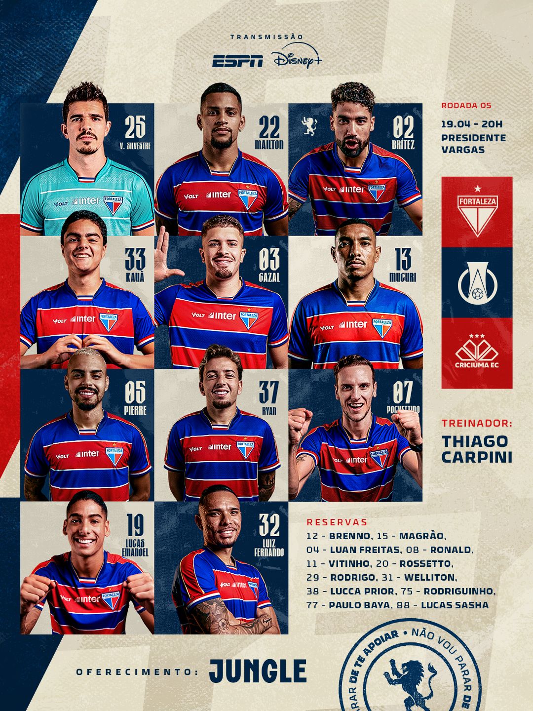 O Criciúma volta a campo pela Série B do Campeonato Brasileiro na noite desde domingo (19). Depois de uma vitória com muita emoção na última semana, o Tigre busca continuar o caminho das vitórias contra o Fortaleza, fora de casa. A bola rola a partir das 20h, no Estádio Presidente Vargas.