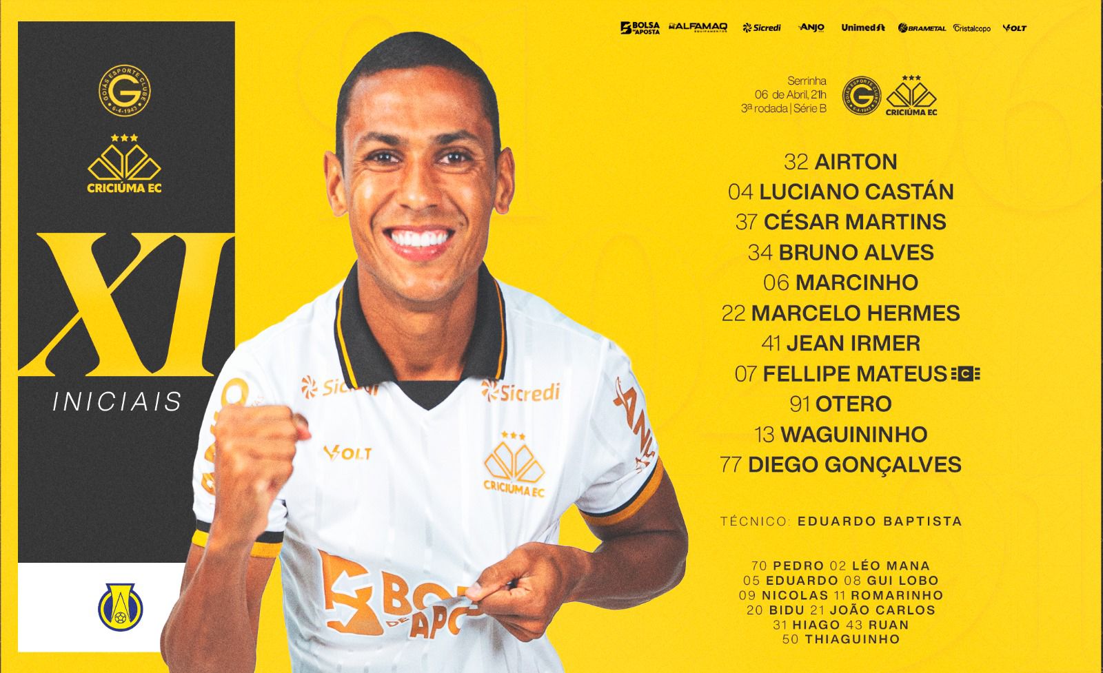 O Criciúma volta a campo pela Série B do Campeonato Brasileiro na noite desta segunda-feira (6). Após o tropeço em casa e com um a mais diante do Athletic, o Tigre busca retomar o caminho das vitórias contra o Goiás, fora de casa. A bola rola a partir das 21h, no Estádio Hailé Pinheiro, a Serrinha, em Goiânia.