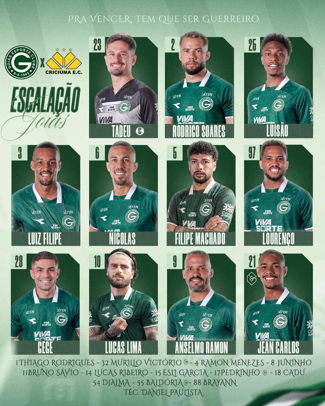 Tadeu, Rodrigo Soares, Luisão, Luiz Filipe e Nicolas; Filipe Machado, Lourenço, Lucas Lima e Gegê; Jean Carlos e Alselmo Ramon.