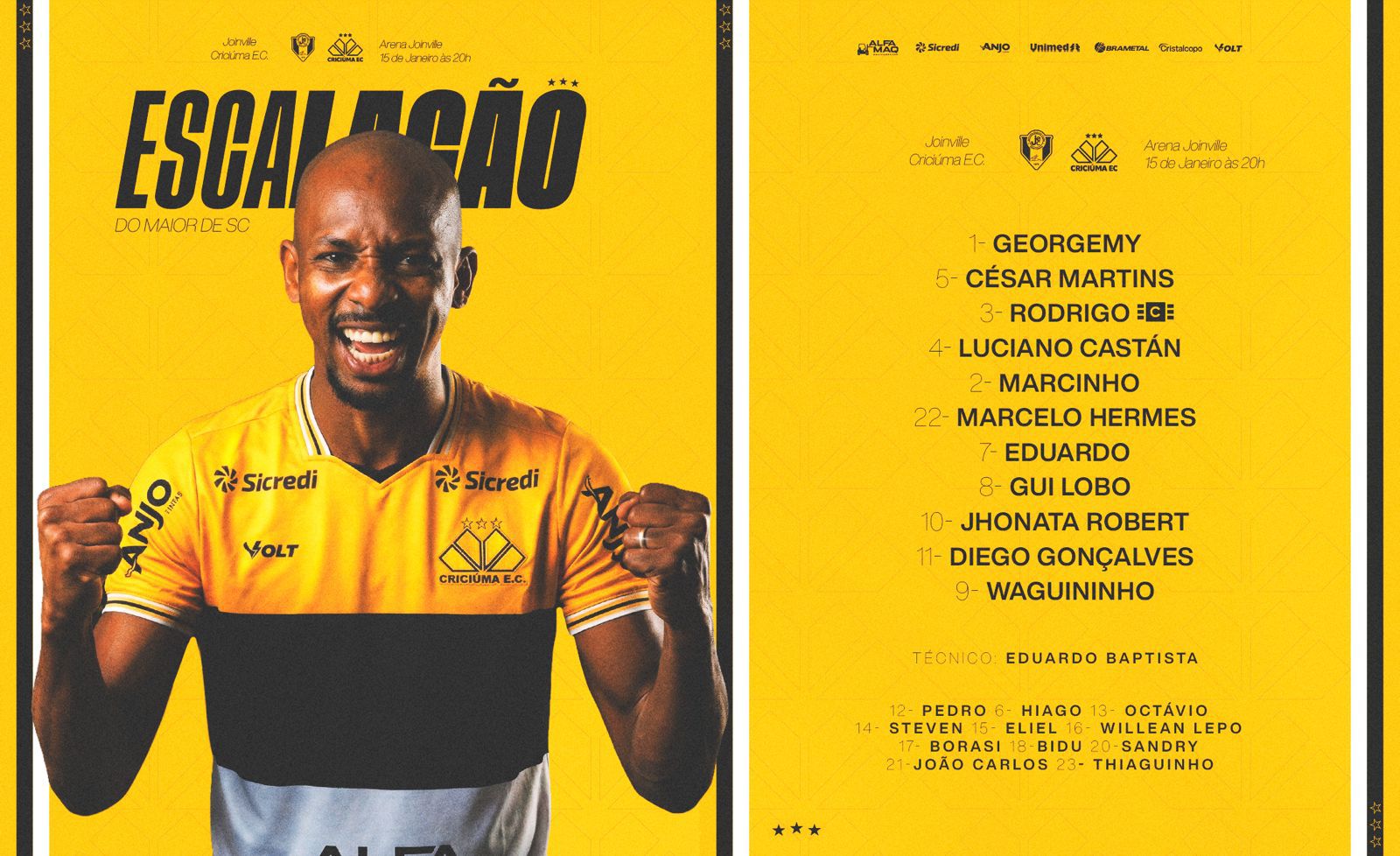 O Criciúma visita o Joinville na noite desta quinta-feira (15), na Arena Joinville, no clássico Norte-Sul de Santa Catarina, às 20h. O confronto é válido pela terceira rodada do Campeonato Catarinense de 2026.