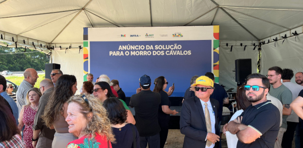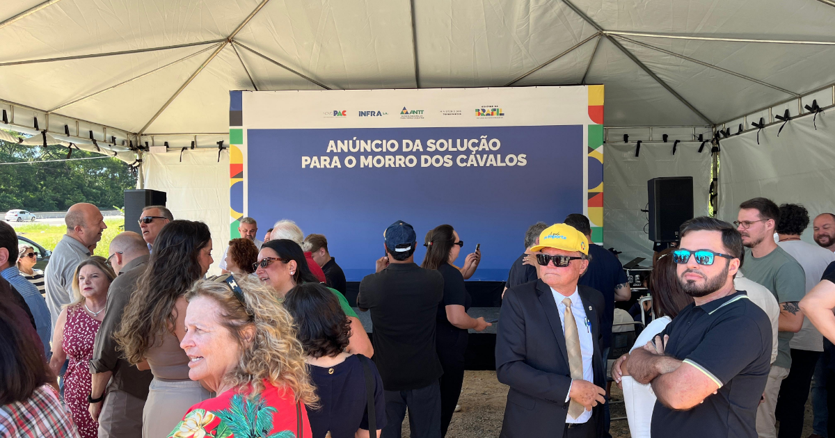 O ministro dos Transportes, Renan Filho, anuncia, nesta quarta-feira (28), a solução para o impasse histórico do Morro dos Cavalos, na BR-101, em Palhoça.