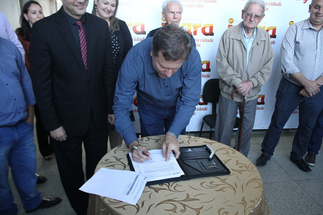 Com a presença de ex-prefeitos e ex-vice-prefeitos, que passaram pelo atual prédio da Prefeitura de Içara, o chefe do Executivo içarense, Murialdo Gastaldon, assinou, na tarde desta quinta-feira, o contrato com a Caixa Econômica Federal para a ampliação do Paço Municipal Ângelo Lodetti.