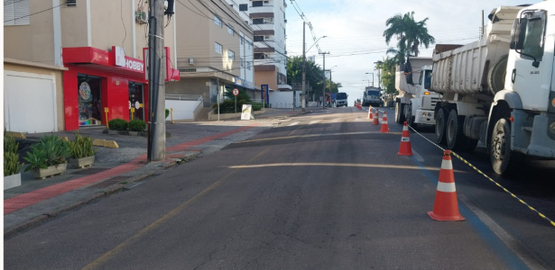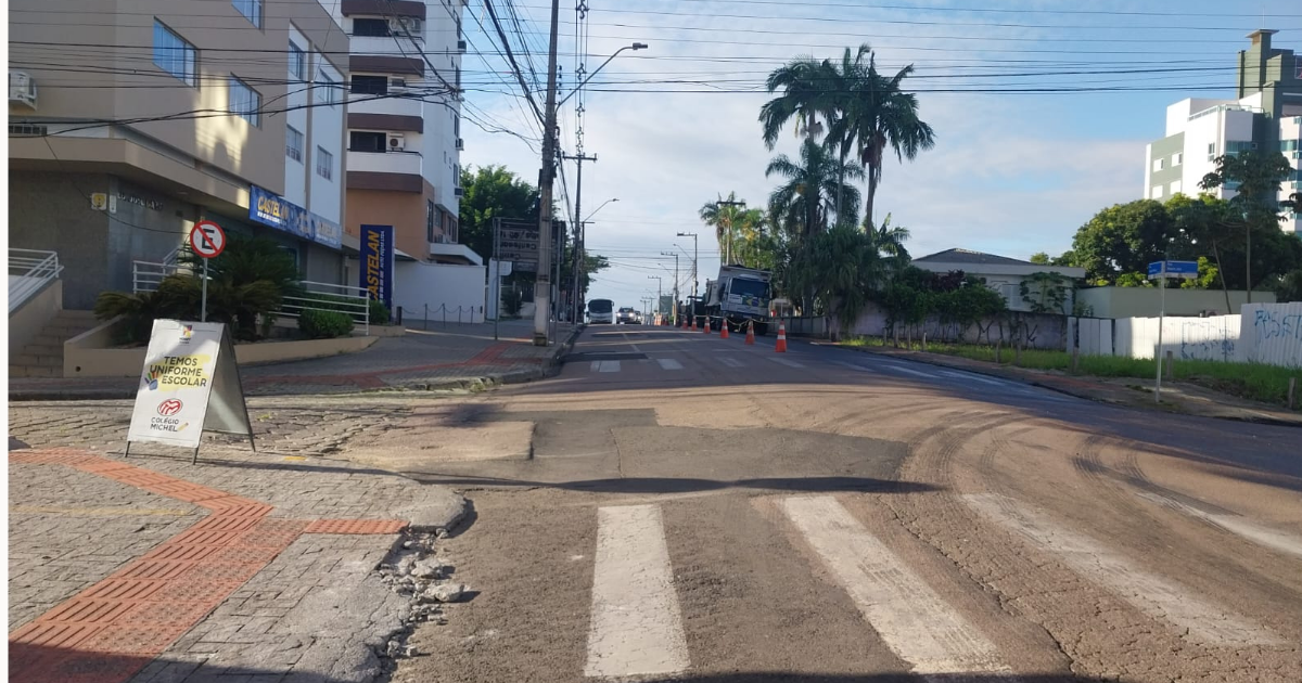 A rua Joaquim Nabuco, no Centro de Criciúma, está com meia pista interditada para a realização de obras de recapeamento asfáltico. O trecho de cerca de 800 metros, entre o cruzamento com a rua Madre Teresa Michel e a avenida Centenário, receberá uma nova capa asfáltica.