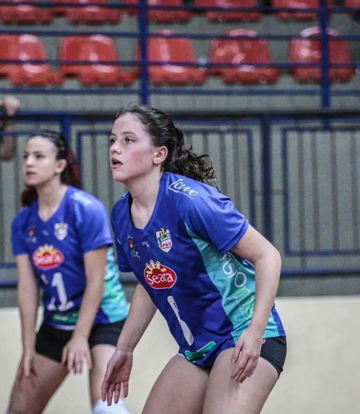 Giovana tem 14 anos e atua na função de ponteira e líbero, sendo que começou a participar das Escolinhas de Voleibol de Forquilhinha com 12 anos de idade.