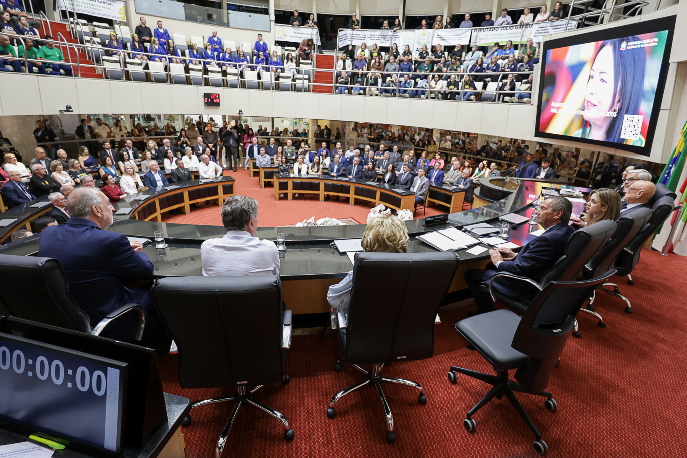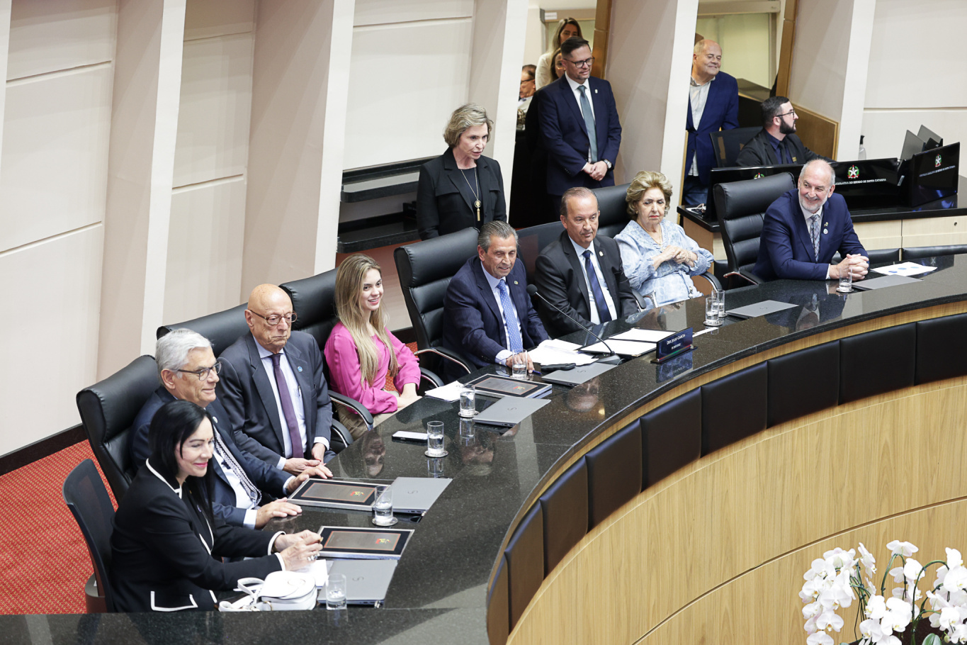 O plenário ficou lotado, reunindo cerca de 500 pessoas, entre autoridades, representantes do movimento, familiares e sociedade civil. A mesa contou com a presença do governador de SC, Jorginho Mello; da senadora Ivete Appel da Silveira; do senador Esperidião Amin; do presidente da Fecam, Topázio Neto; do ex-governador, Eduardo Pinho Moreira; do presidente da Federação das APAEs, Osmar Minatto; e da diretora de Assuntos Internacionais da Apae-Brasil, Rosane Teresinha Jahnke, além de parlamentares de diversas bancadas.