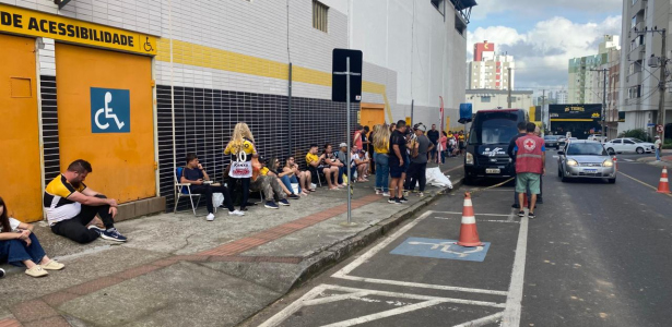 A bilheteria, prevista para abrir às 9h, já registrava uma fila antes das 7h15. Alguns torcedores chegaram durante a madrugada. Um deles, conhecido como Zico, relatou que chegou ainda na madrugada. “Cheguei às três e meia da manhã. Vou comprar nove ingressos e levar nove brinquedos. Estou pegando ingressos também para vizinhos e amigos.
