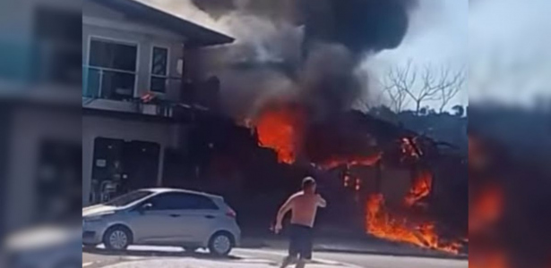O monomotor caiu em um espaço comercial na cidade gaúcha, que conta com residências e um restaurante, por volta das 10h30. Após a queda, uma explosão provocou um incêndio que atingiu duas residências.