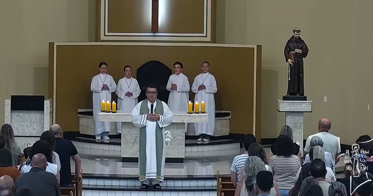 O episódio comoveu os fiéis presentes e repercutiu entre membros da comunidade e a celebração seguiu em clima de silêncio e oração.