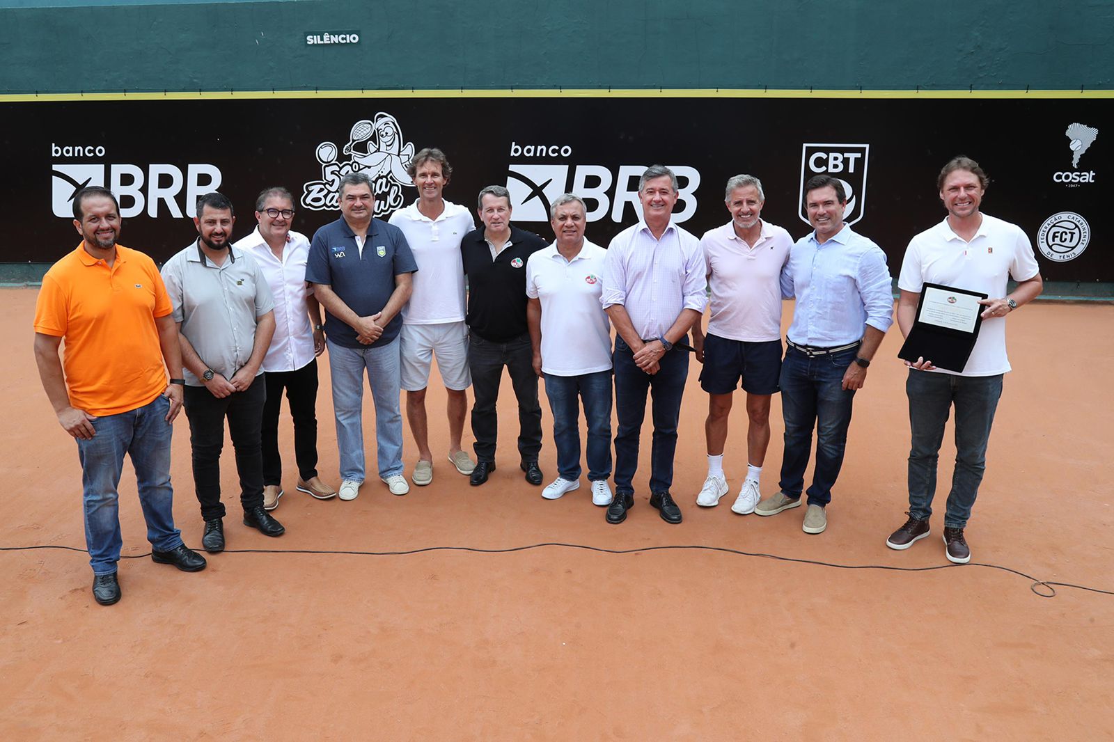 Após as falas, o presidente do Mampituba, Larciney Fabris, entregou uma placa homenageando e agradecendo o presidente da CBT e da Cosat, Rafael Westupp, pela realização do evento nas 14 quadras de tênis do clube.