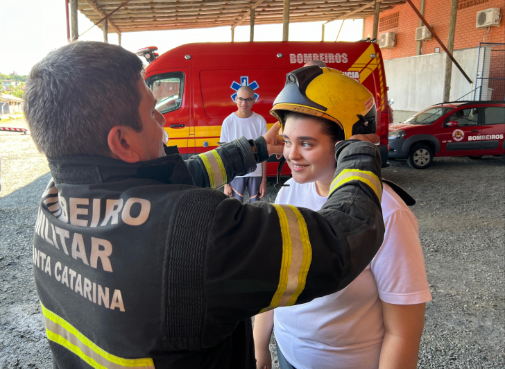 Os alunos conheceram de perto as viaturas e equipamentos utilizados nas operações de resgate do Corpo de Bombeiros Militar de Santa Catarina (CBMSC). Para quem se interessar em visitar o 4º BBM, pode entrar em contato por meio do instagram @cbmsc.criciuma.
