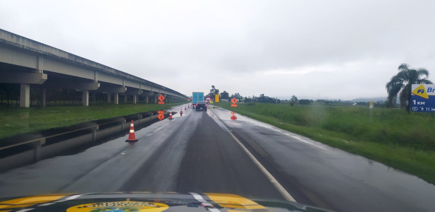 KM 424: alagamento no sentido sul, bloqueio até o quilômetro 426.