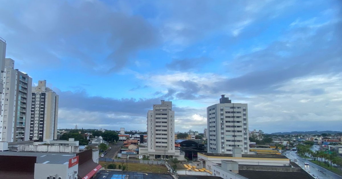O avanço de uma frente fria sobre Santa Catarina muda o padrão do tempo neste início de semana na região. A previsão indica maior presença de nuvens, possibilidade de chuva fraca e temperaturas mais baixas em comparação aos últimos dias.