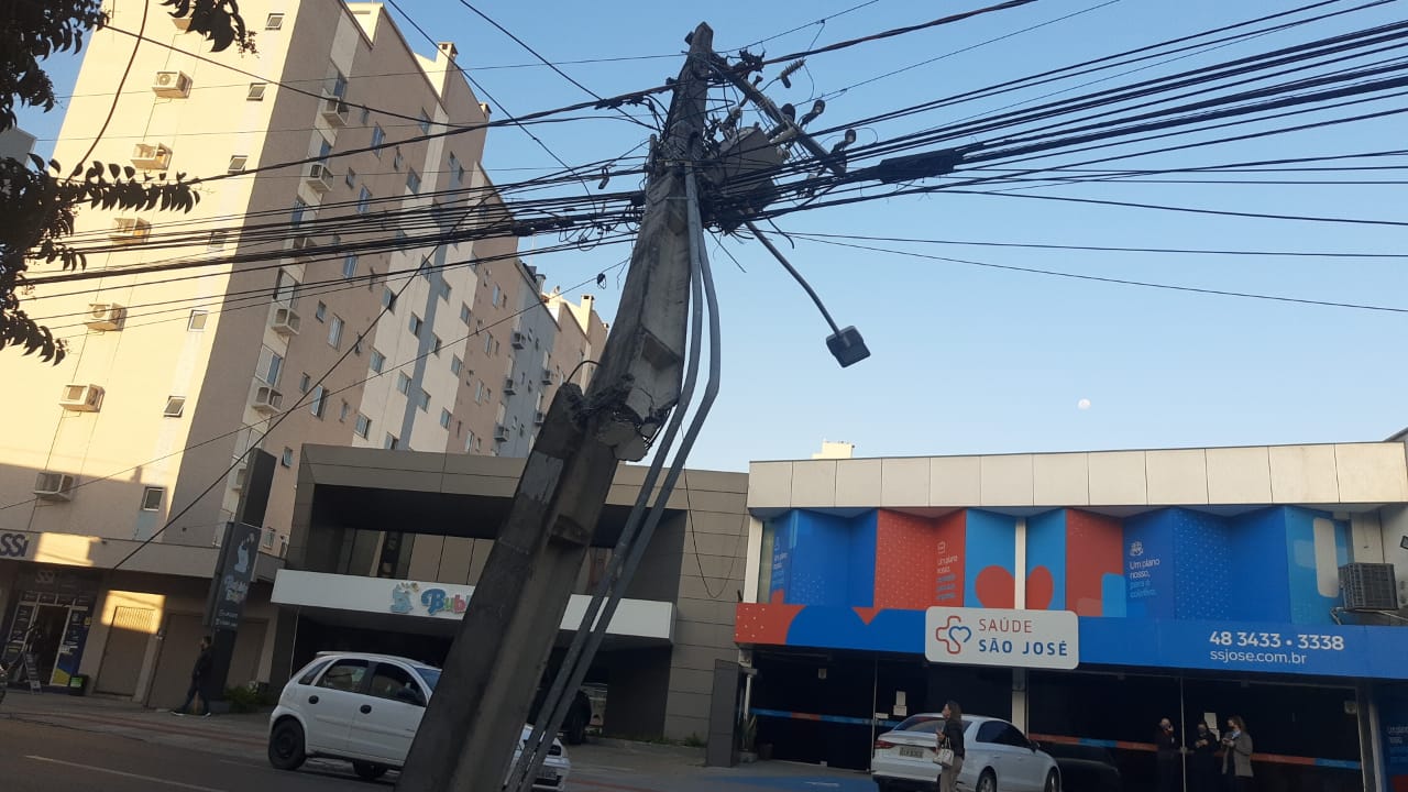 A Diretoria de Trânsito e Transporte (DTT) e a Polílcia Militar orientam o trânsito enquanto os profissionais da Celesc trabalham para restabelecer o fornecimento de energia.