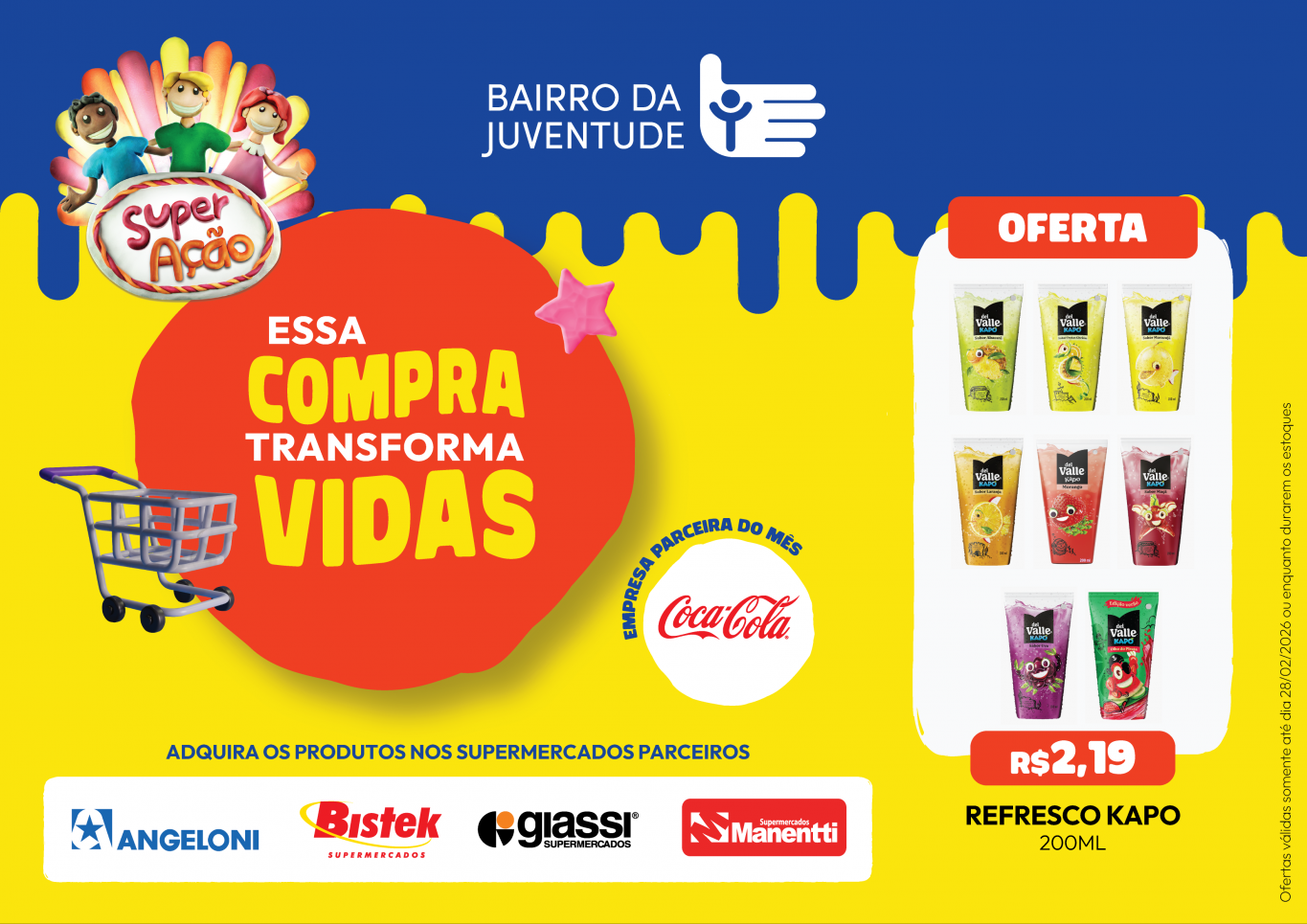A tradicional Campanha SuperAção do Bairro da Juventude chega à sua 14ª edição reforçando um propósito que já mudou milhares de vidas: transformar compras do dia a dia em oportunidades reais para crianças, adolescentes e jovens.