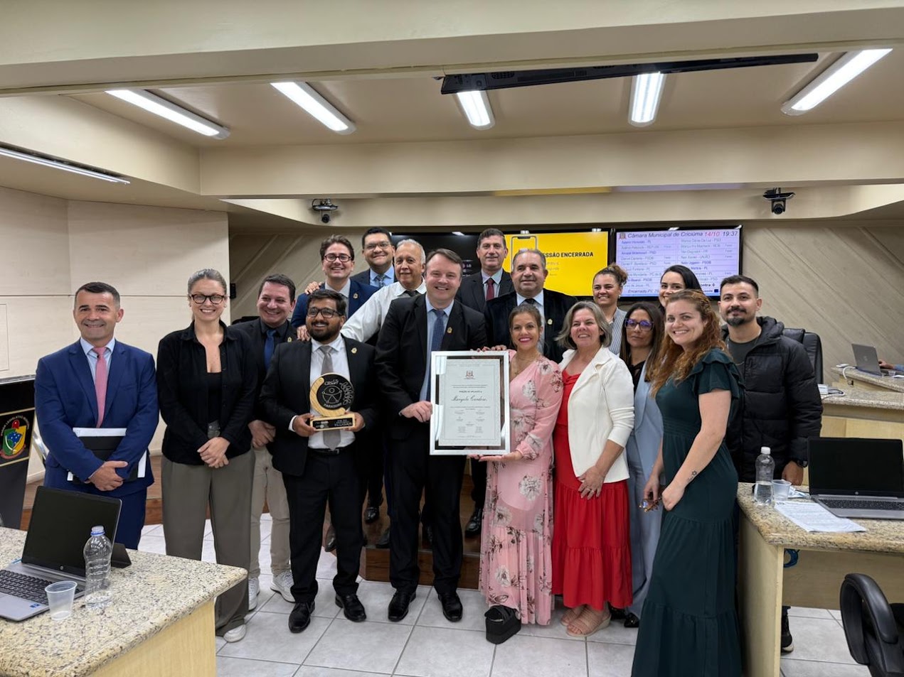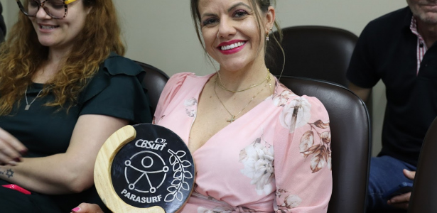 A paratleta criciumense Maryele Cardoso foi homenageada nessa terça-feira (14) na Câmara de Vereadores de Criciúma com uma moção de aplauso em reconhecimento à sua trajetória no surf adaptado. A iniciativa partiu do vereador Aldinei Potelecki, após Maryele conquistar recentemente o título do Campeonato Brasileiro de Parasurf. “Fiquei bastante emocionada em receber uma homenagem à moção de aplausos da Câmara de Vereadores de Criciúma. É um resultado de 15 anos de atleta e este ano veio na modalidade do surf. Não existem palavras para agradecer as pessoas que estiveram presentes lá, esse reconhecimento e como essa moção de aplausos me inspira a continuar nessa trajetória para atleta e também me inspira a cada vez mais dar o meu melhor nos treinos para que no mundial eu traga o resultado, que é o primeiro lugar, para o nosso país”, afirmou.