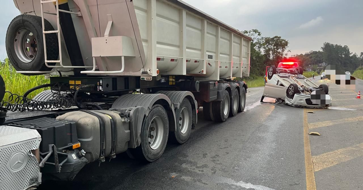 Um capotamento foi registrado na segunda-feira (30) na rodovia SC-108, no bairro Bel Recanto, em Urussanga. O acidente envolveu um automóvel e um caminhão. De acordo com informações repassadas pelo Corpo de Bombeiros, o carro, um carro, capotou sobre a pista após colidir com um caminhão. Quando a guarnição chegou ao local, o veículo já estava virado e os ocupantes fora do automóvel.
