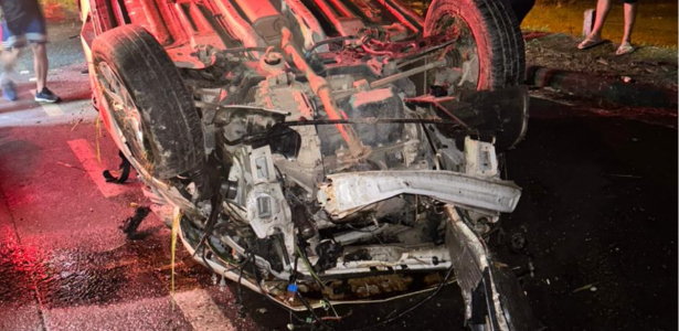 Os bombeiros foram acionados pela central de operações para atender a ocorrência. No local, a equipe confirmou o capotamento de um Fiat Mobi, que tinha apenas o condutor.