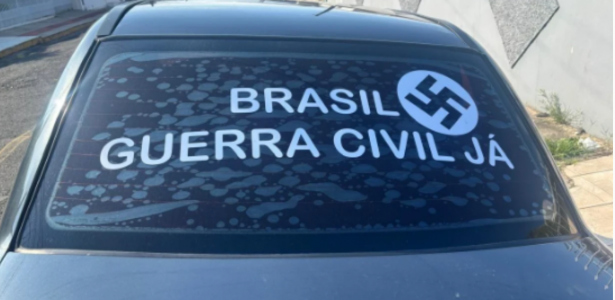 Conforme os policiais, o veículo chamou a atenção durante o tráfego urbano, o que motivou a abordagem. O condutor foi encaminhado à Central de Plantão Policial e, após a constatação do conteúdo exibido no automóvel, teve a prisão em flagrante registrada por divulgação de ideologia nazista.