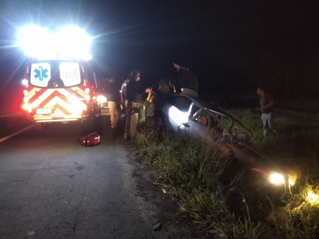 Um acidente com saída de pista deixou uma vítima presa às ferragens e com uma fratura na perna. A ocorrência foi registrada na noite desta sexta-feira, 10, na BR-101 em Araranguá.