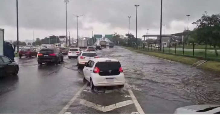A rodovia federal também teve pontos de alagamento nas cidades de Biguaçu e São José, onde o monitoramento da Defesa Civil indicou 121,4 mm e 101,8 mm de precipitação, respectivamente. Na Capital, choveu 97,9 mm.