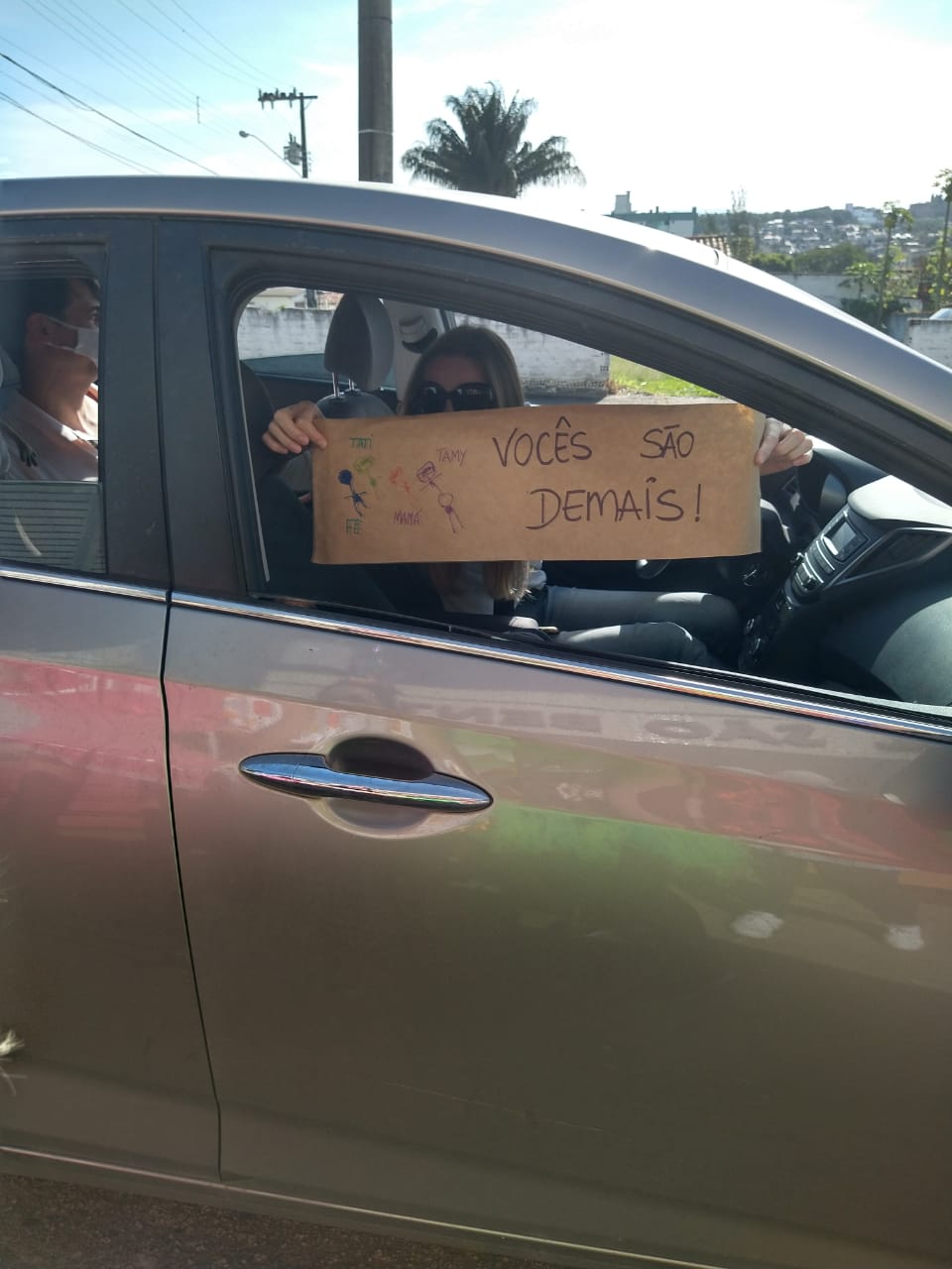 O diferencial deste drive-thru foi a temática dos cabelos malucos e fantasias. Os alunos receberam kits com surpresas entregues pelas professoras. Com muita alegria e costumização, a brincadeira foi garantida.