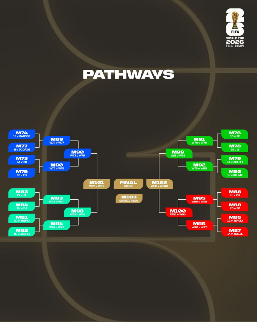 Com o aumento do número de classificadas, irão se classificar os dois primeiros colocados de cada grupo, além dos oito melhores terceiros colocados. Com isso, será realizada uma fase prévia antes das oitavas de final. Confira o chaveamento abaixo: