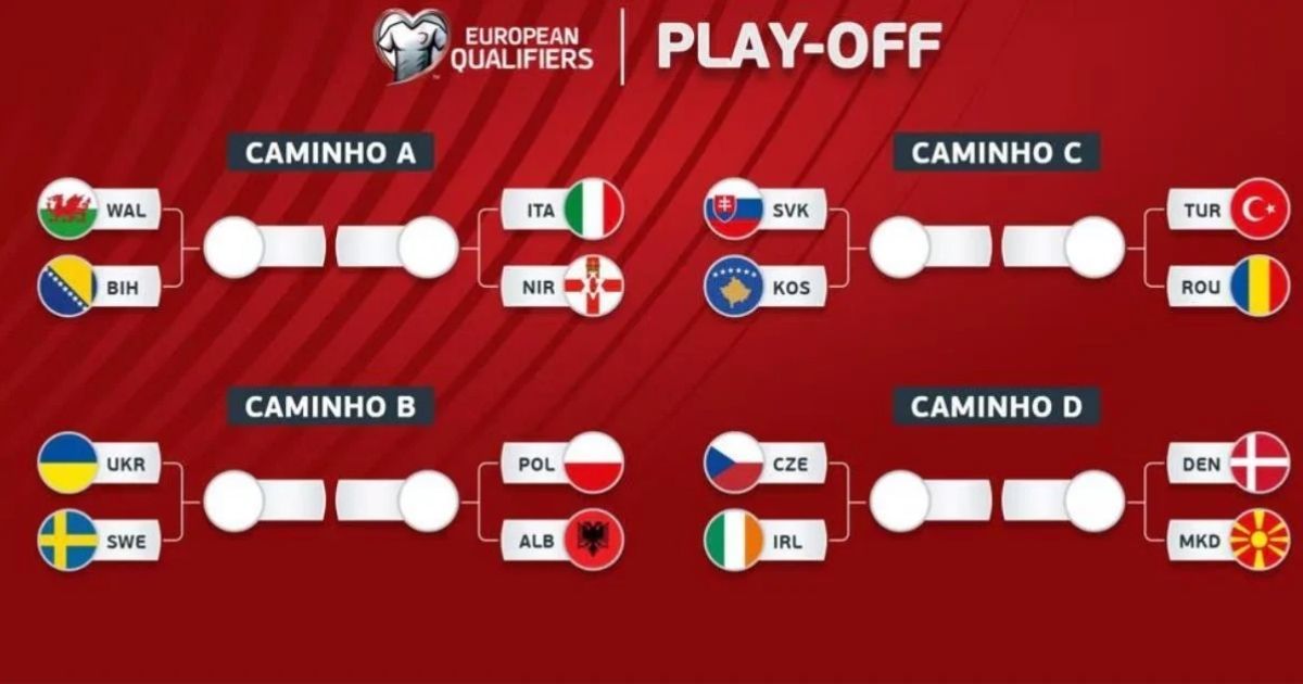 - REPESCAGEM A: Itália x Irlanda do Norte e País de Gales x Bósnia e Herzegovina;