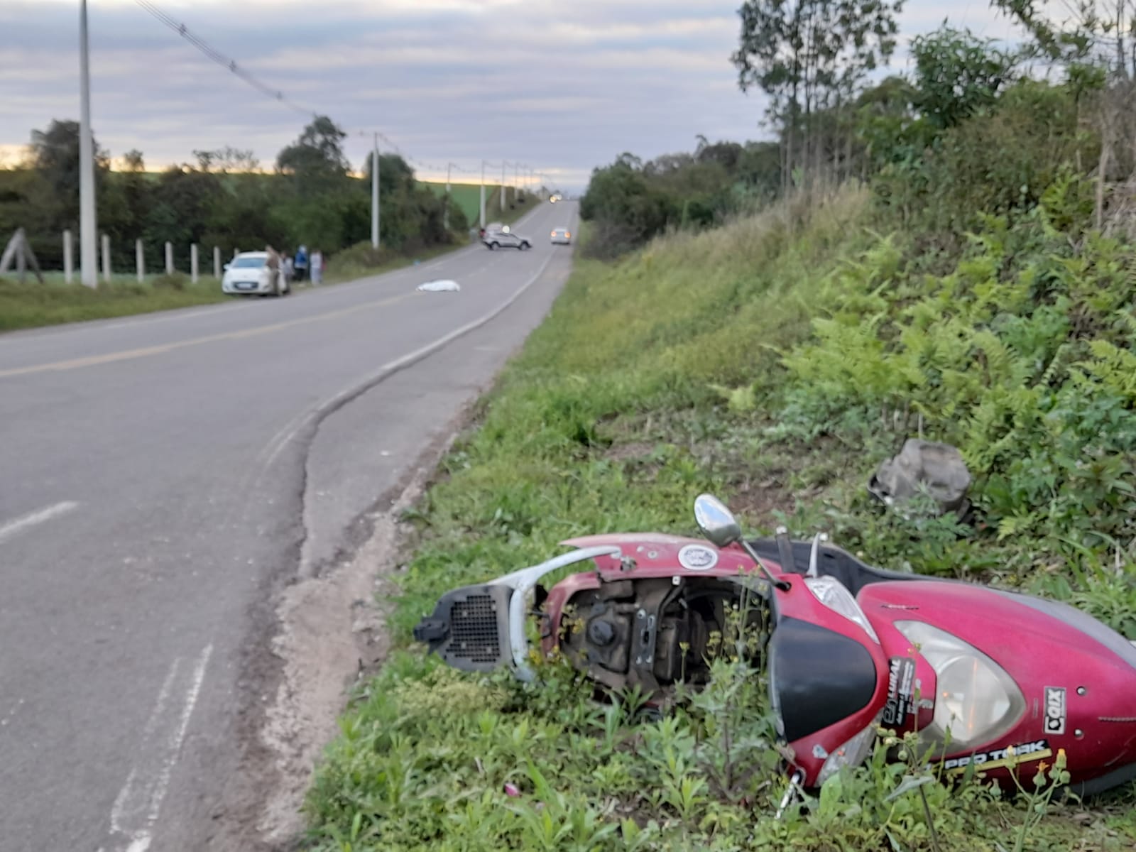 Uma mulher de 48 anos morreu em um acidente de trânsito no bairro Universitário, em Criciúma, na Rodovia Antônio Justi, na tarde deste sábado (10). A vítima dirigia uma motocicleta quando colidiu em um Gol.
